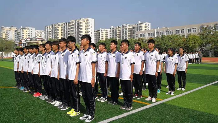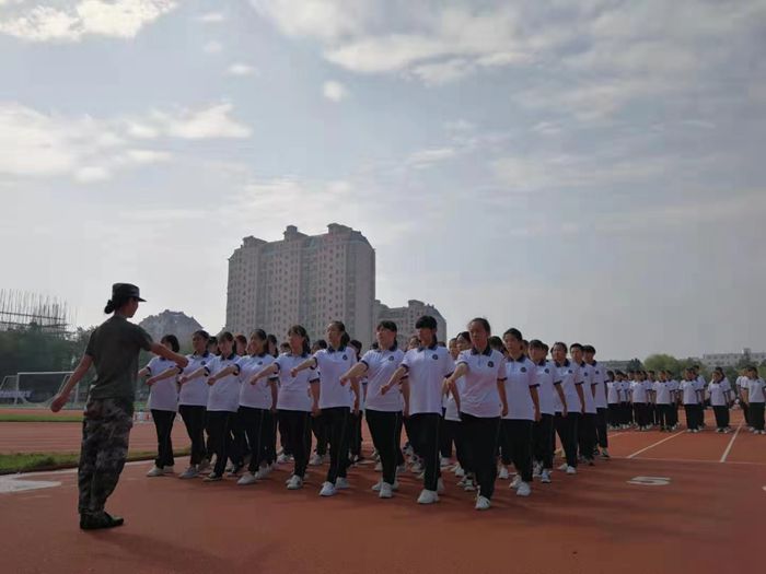 他们在教官的带领下以饱满的精神,昂扬的斗志,出色的完成了齐唱军歌,四面转法,齐步走,正步走,跑步走以及排列各种有特色的班级队形等多项军训任务。校园处处可闻铿锵口号,操场时时可见整齐队形。