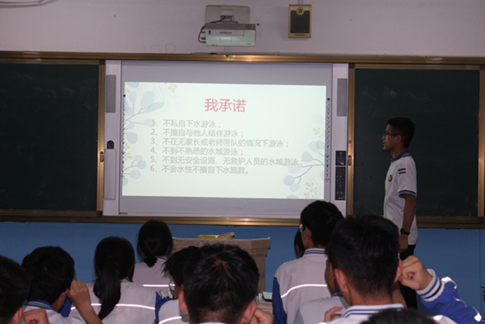 在班会上,各班班主任老师向学生进行了防溺水专题知识教育。他们通过近期的真实案件来对学生进行宣传教育,让学生增强安全意识,营造珍爱生命氛围;并要求学生承诺:不私自下水游泳;不擅自与他人结伴游泳;不在无家长或老师带队的情况下游泳;不到不熟悉的水域游泳;不到无安全设施、无救护人员的水域游泳;不会水性不擅自下水施救。