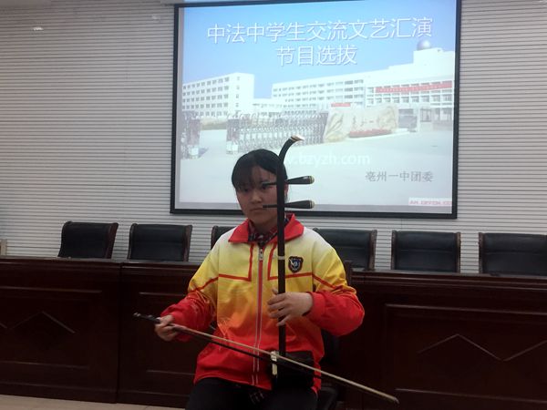 4月11日晚上,我校行政楼4楼会议室里群英荟萃,好戏连台,由我校团委组织的迎中法学生交流文艺汇演节目选拔赛正在举行,迎接5月份即将到来的中法学生交流。